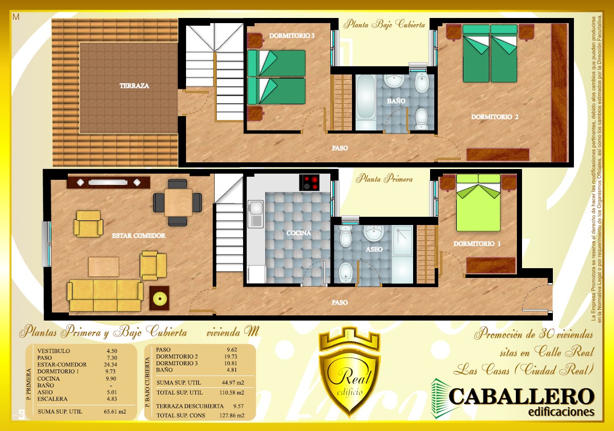 La promoción está compuesta por 30 viviendas con sus respectivas cocheras, diseñadas para ofrecer confort, calidad y funcionalidad. Cada vivienda cuenta con excelentes acabados, incluyendo estructura y fachada de alta resistencia, acristalamiento Climalit 4/6/4, pavimentos y alicatados de primera calidad, así como aparatos sanitarios Roca o similares. El edificio dispone de videoportero, ascensor, garaje y un portal decorado con materiales nobles, reflejando un cuidado especial en los detalles. Todas las viviendas pasan por un riguroso control de calidad y cuentan con seguro decenal, garantizando la máxima seguridad y durabilidad en cada construcción.